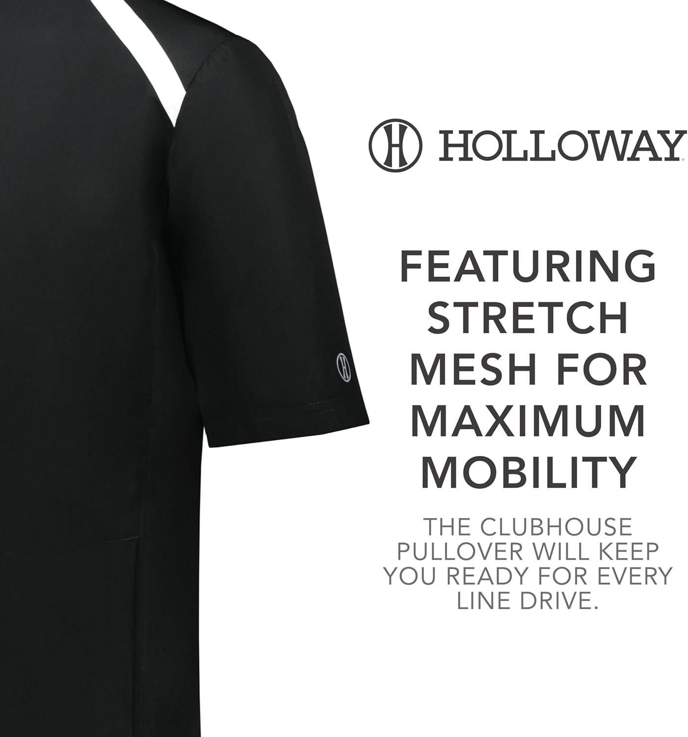Warm up for game day in the Clubhouse Pullover from Holloway. Featuring stretch mesh for maximum mobility and set-in sleeves, this quarter zip pullover will keep you ready for every line drive.