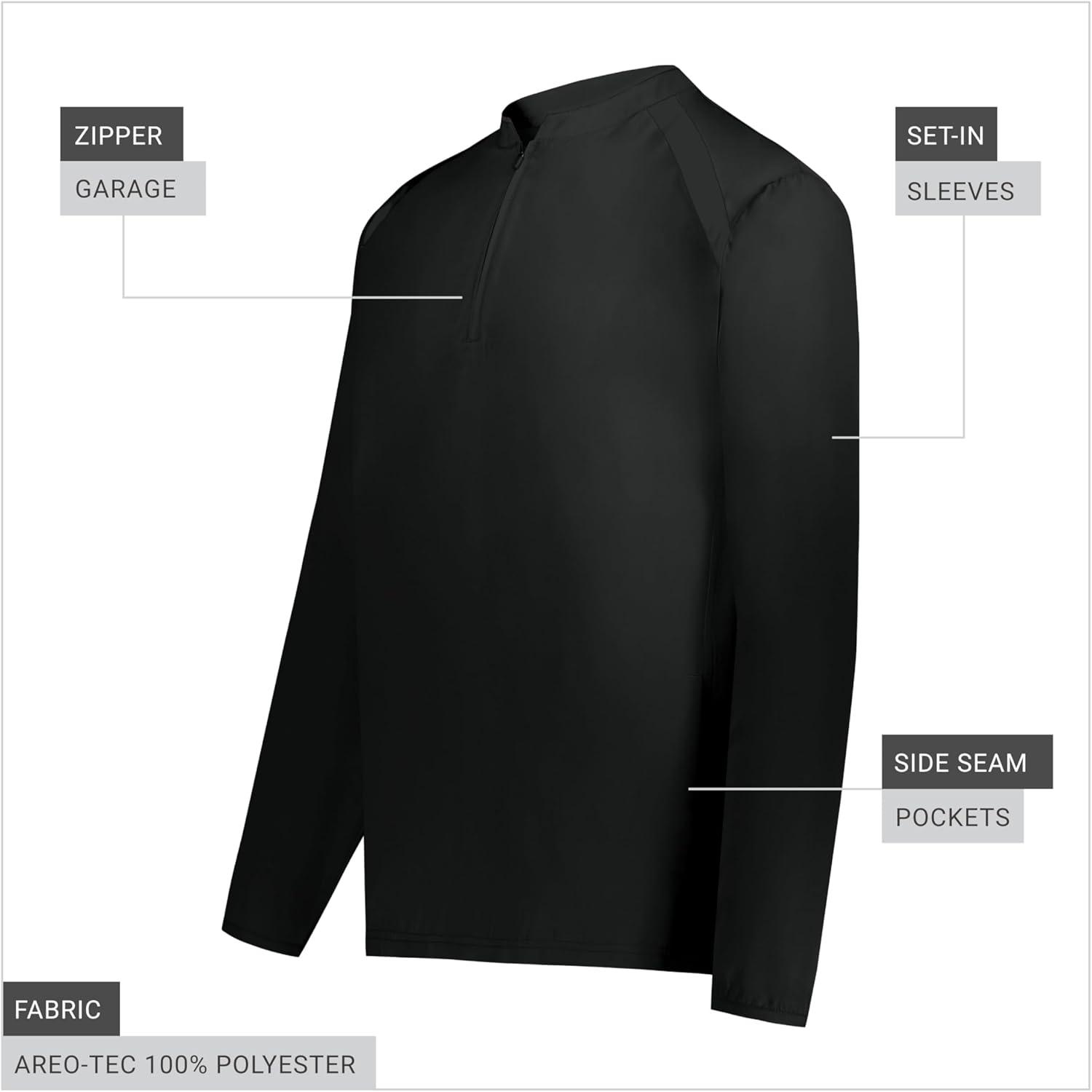You'll be sure to stay comfortable on the field in the Clubhouse Pullover from Holloway. This long sleeve quarter zip pullover features a side zipper for easy on/off and will keep you looking your best at all times.