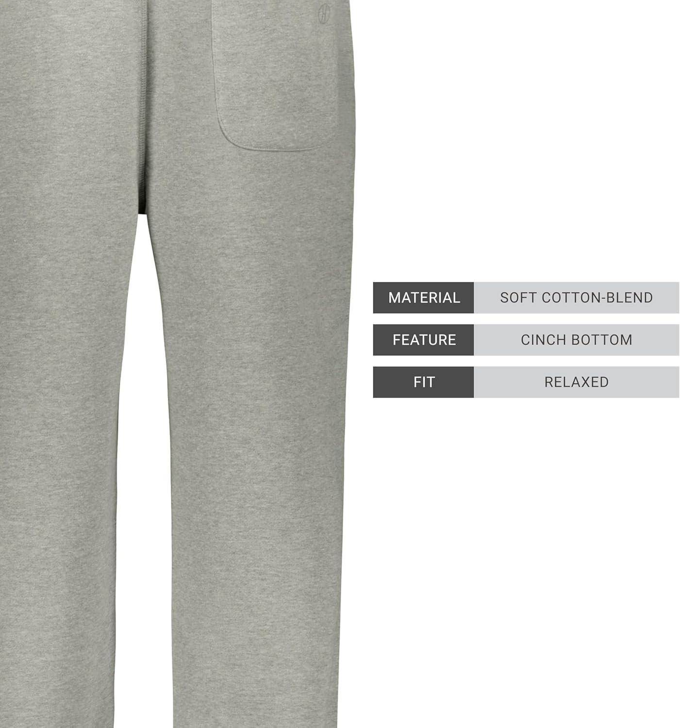 A fleece pant made for everyday wear, featuring soft cotton-blend fabric, a cinched bottom hem, and a relaxed fit built for comfort.