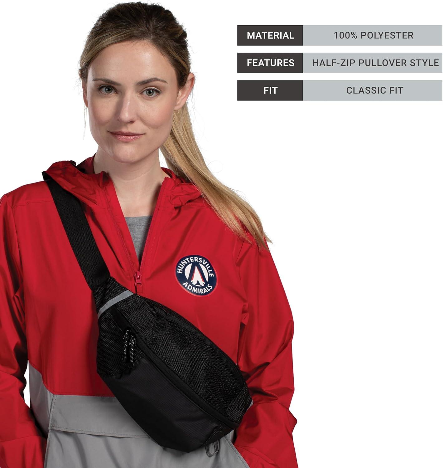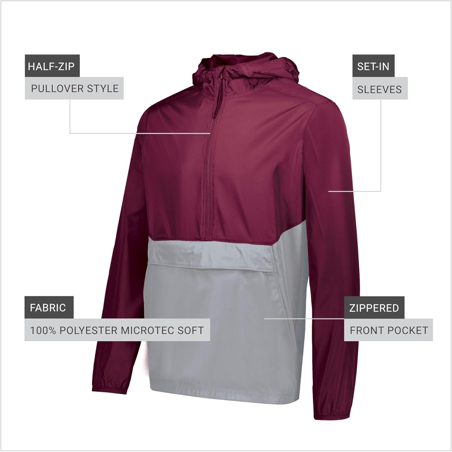 The Adult Pack Pullover from Holloway lives up to its name! Featuring a half-zip pullover style with an adjustable 3-piece hood, this jacket folds up into its zippered front pocket for quick and easy storing.