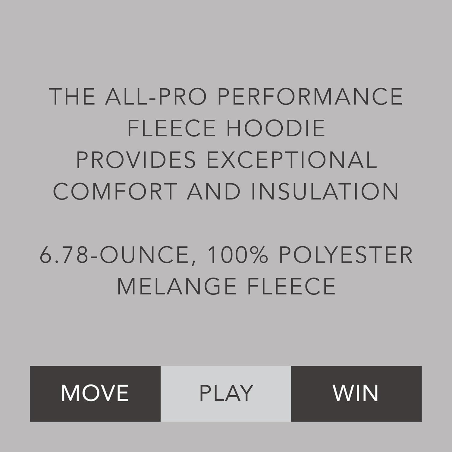 Stay warm and cozy in the All-Pro Performance Fleece Hoodie. This hoodie is crafted from 6.78-ounce, 100% polyester melange fleece, providing exceptional comfort and insulation. It features raglan sleeves for improved mobility, and a front pouch pocket with an inner mesh cell phone or valuables pocket for convenient storage. The adult sizes of the hoodie include a scuba-shaped 3-piece hood with a contrast color lining and drawcord, adding style and protection. The self-fabric cuffs provide a snug fit, while the open bottom design adds a relaxed and casual look. Whether you're lounging at home or at the game, this All-Pro Performance Fleece Hoodie is the perfect choice for staying comfortable and stylish.