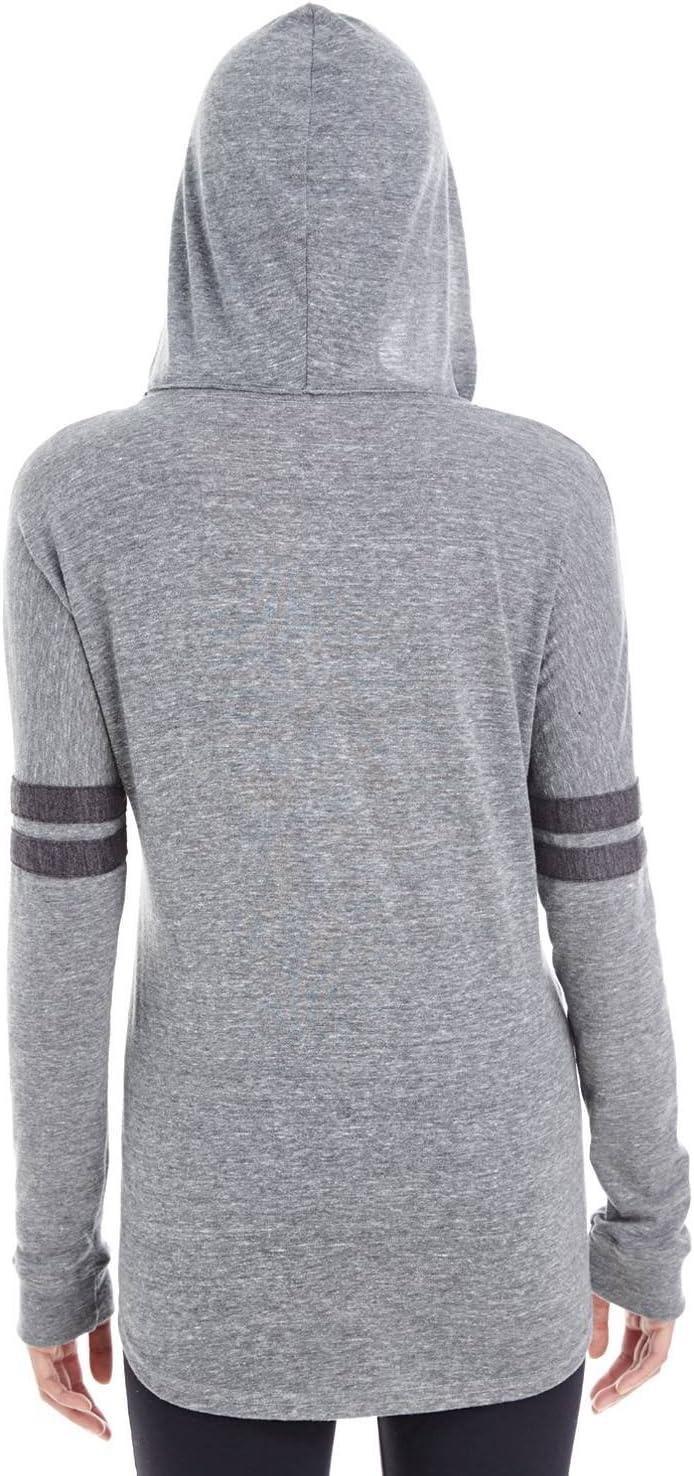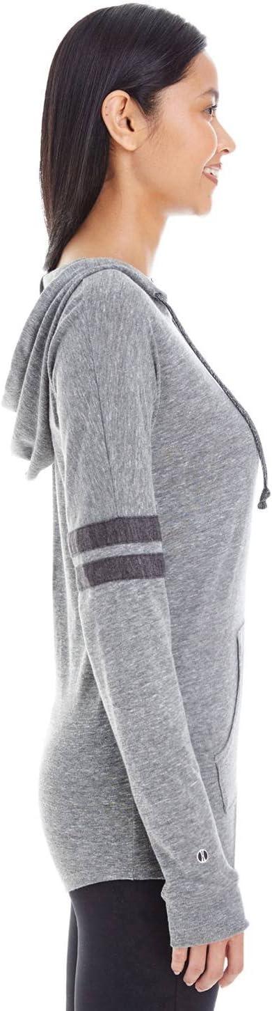 Tri-Blend Vintage Heather is constructed with 4 3 ounce 50% polyester/37% cotton/13% rayon * Ladies' fit * Tagless label * Hood with drawcord on S-2XL only * Raw edge neckline * Raglan sleeves with contrast color sleeve stripes * Longer length contoured bottom
