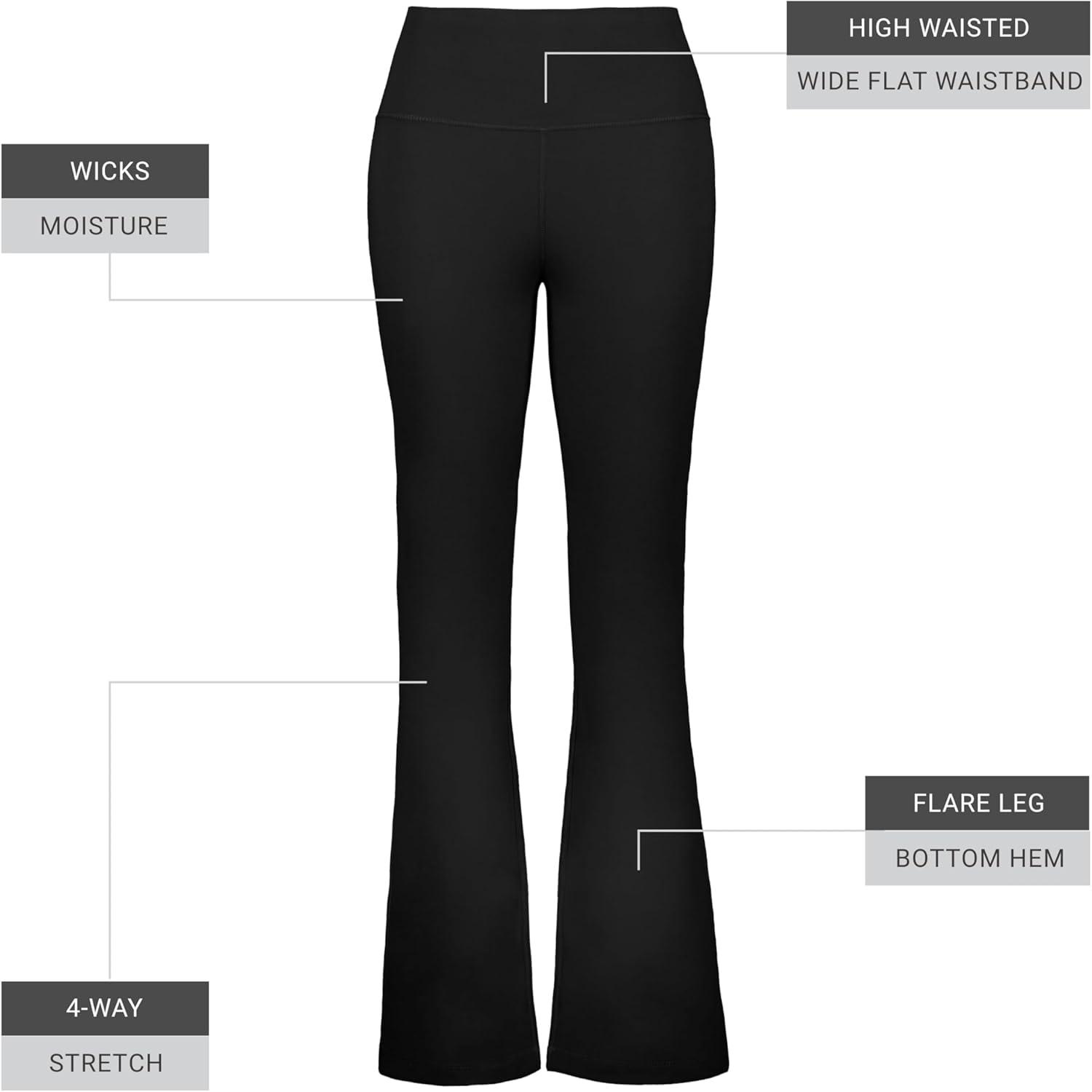 Built for comfort on the move, this ladies' fit, high-waisted pant features moisture-wicking stretch knit, flatlock seams, and a flare leg finish.
