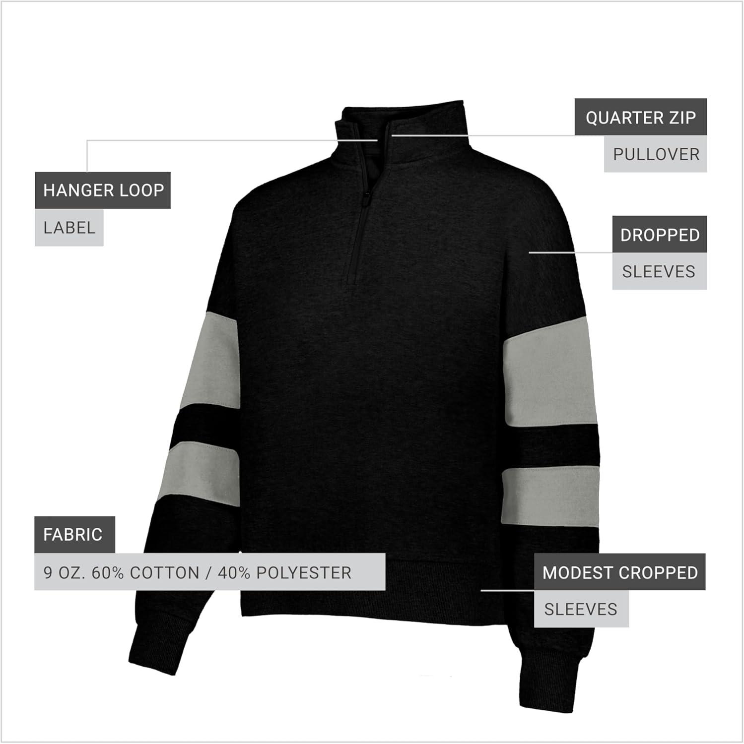 A modern quarter zip pullover with a modest cropped length, dropped shoulders for comfort, and soft fleece warmth.