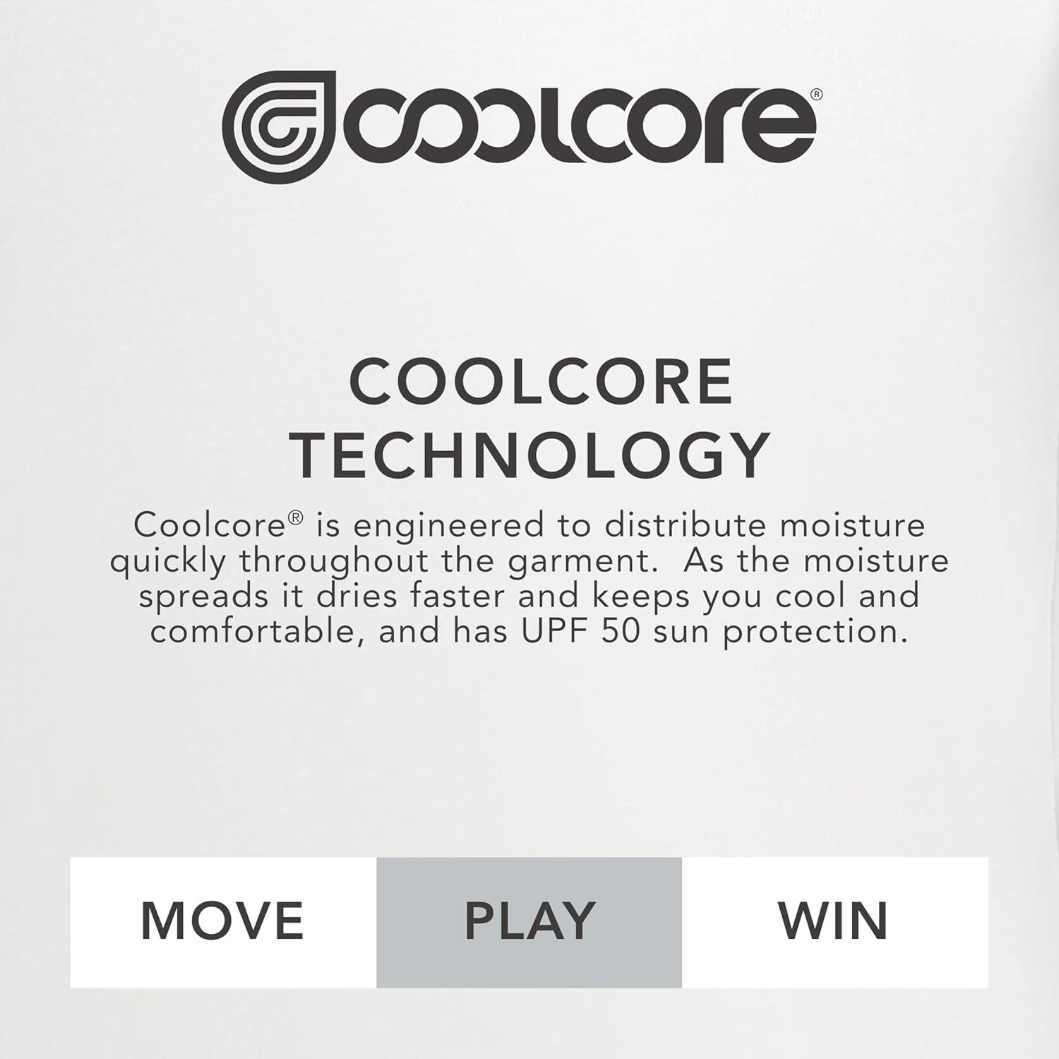 Coolcore fabric is engineered to distribute moisture quickly throughout the garment. As the moisture spreads it dries faster and keeps you cool and comfortable, and has UPF 50 sun protection.